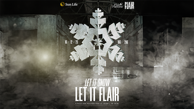 Và ở lần đầu tiên này, chúng tôi hào hứng giới thiệu Sự kiện Giáng sinh “LET IT SNOW, LET IT FLAIR” với hình tượng bông hoa tuyết khổng lồ được ghép lại từ rất nhiều biểu tượng trong logo FLAIR BY SUN LIFE, diễn ra vào Thứ bảy, 16/12/2023 tại S.pace – 102C Nguyễn Văn Cừ, quận 1.