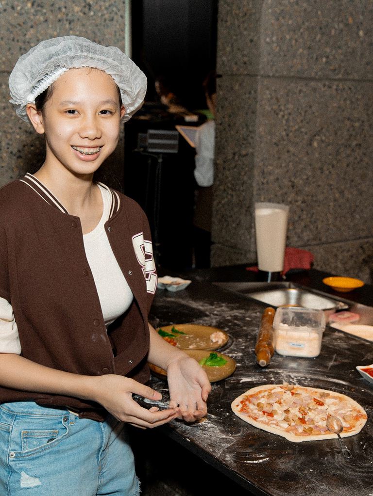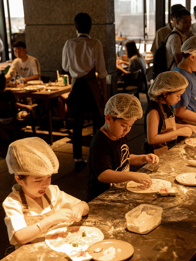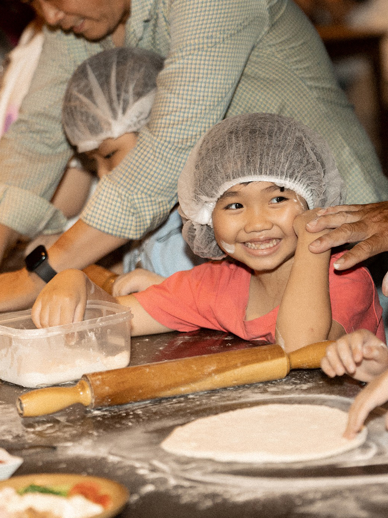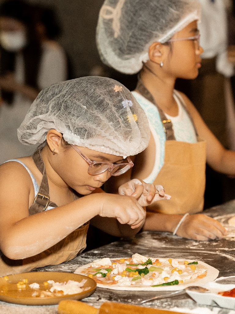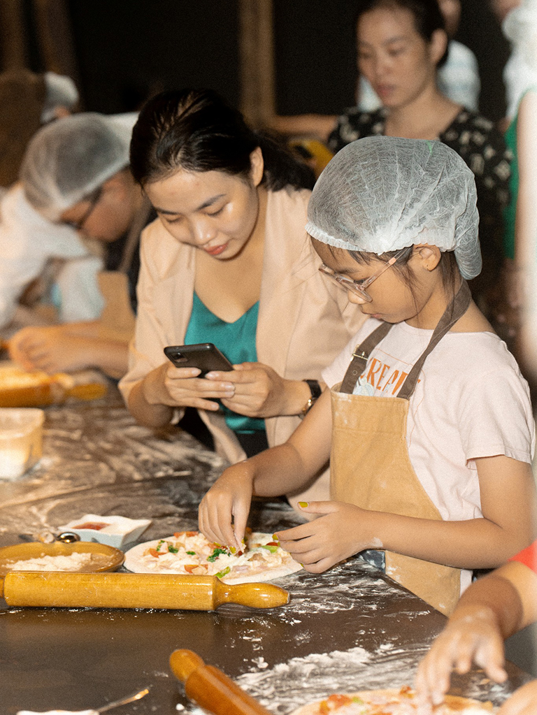 Kết hợp cùng Pizza 4P's, Flair mang đến những trải nghiệm thú vị cho cả gia đình vào ngày cuối tuần. Các bé được tự tay làm chiếc bánh Pizza thơm lừng. Từ nhào bột, cán bánh, rải nhân... các đôi tay nhỏ xinh cứ thế thoăn thoắt, say mê dưới sự hướng dẫn của các anh chị đầu bếp lành nghề.