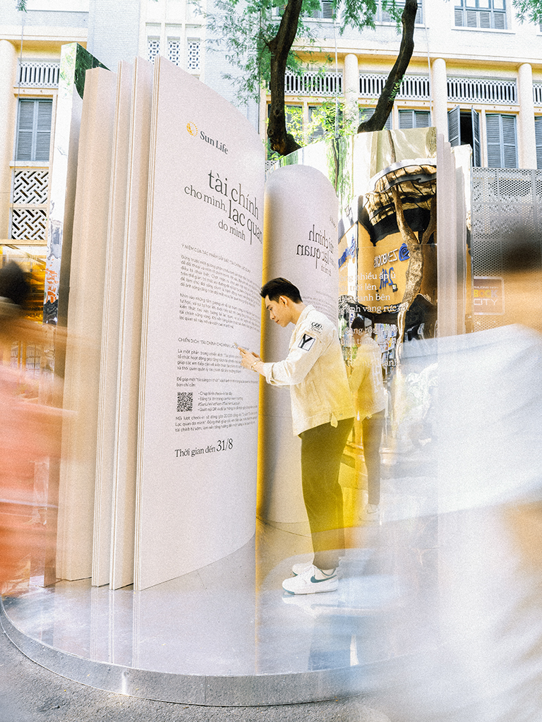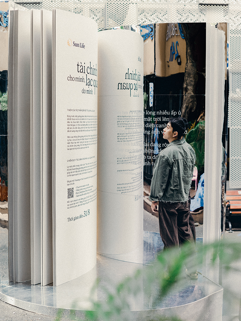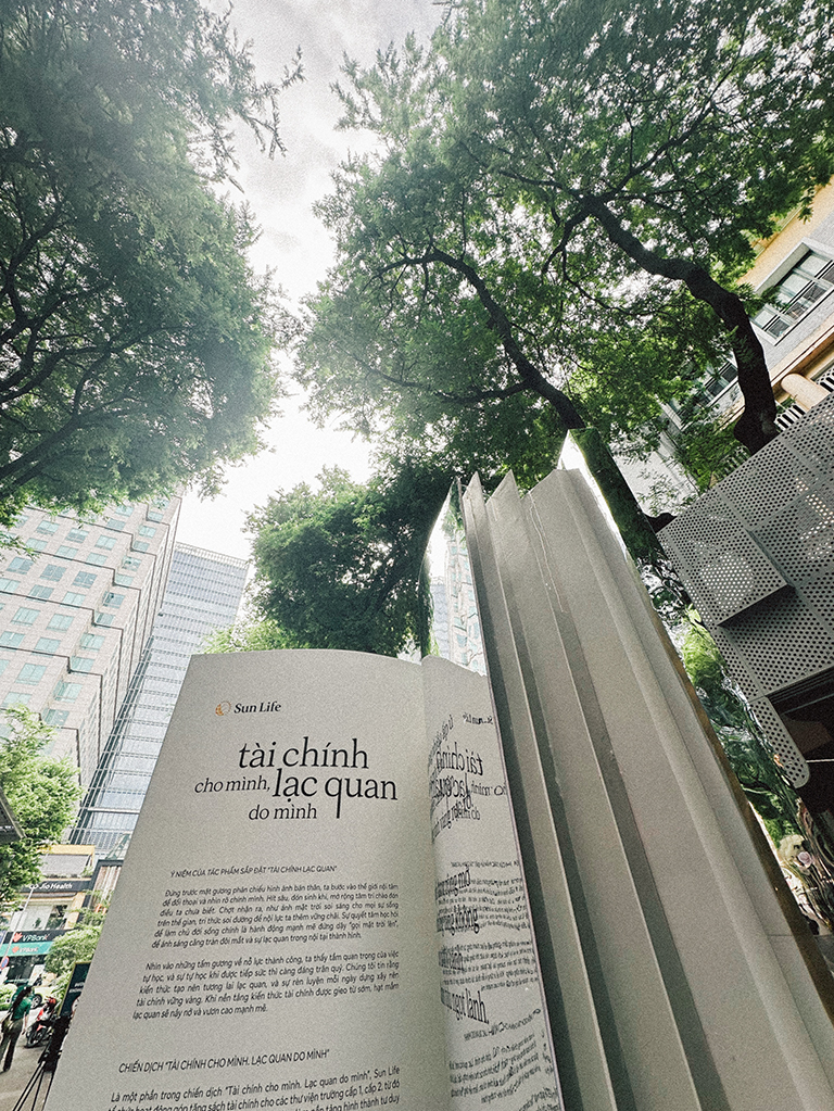Chính vì vậy, Sun Life trưng bày tác phẩm sắp đặt "Tài chính lạc quan" tại đường sách Nguyễn Văn Bình, Thành phố Hồ Chí Minh với mong muốn gợi mở góc nhìn mới và cùng cộng đồng chung sức lan tỏa kiến thức tài chính đến thế hệ trẻ.