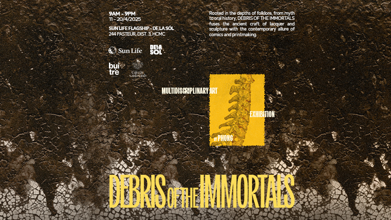 Mượn chất liệu dân gian quen thuộc, từ thần thoại, truyền thuyết, đến các tích cổ truyền miệng, De La Sól - Sun Life Việt Nam cộng tác cùng nghệ sĩ đa phương tiện Nguyễn Quang Trung (Phong) giới thiệu đến bạn triển lãm DEBRIS OF THE IMMORTALS.